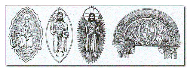 The artists idealize the shape of the external genitalia by making what is called an "almond shaped" design that is called in symbolic language a Mandorla (which means "like an almond"). The same shape of genitalia (the Mandorla) was found in the majority of the Sheila-Na-Gigs that were carved on the top of doorways (usually at the pinnacle of a pointed or lancet arch) in the early churches and on some Cathedrals. This symbol of the Mandorla is a very much used in Christian art. Most of us have seen it at one time or another, but most people have not the slightest idea what it signifies. It is a woman's vulva. The illustration below shows how Barbara G. Walker in her excellent book "The Woman’s Encyclopedia of Myths and Secrets" describes this well known symbol called the Mandorla.