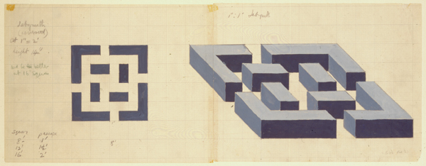 Because he saw the movement of the pieces as labyrinthine, he started to make actual, human-size labyrinths, a form also cherished by his contemporaries Alice Aycock, Robert Morris, Tony Smith and Robert Smithson, among others.