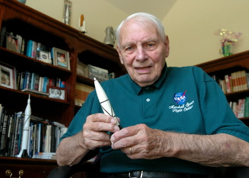 Konrad Dannenberg memorial set for Friday Posted by Shelby G. Spires Thursday, February 19, 2009 2:32 PMHUNTSVILLE, Ala. - A memorial service will be held for Konrad Dannenberg at 2 p.m. Friday in the Davidson Center for Space Exploration at the U.S. Space & Rocket Center. An original member of Dr. Wernher von Braun's German rocket team, Dannenberg, 96, died Monday [Feb. 16, 2009]. The ceremony will be held in the Davidson Center's 3-D movie theater and is open to the public, said Al Whitaker, U.S. Space & Rocket Center spokesman. Dannenberg came to America with von Braun and 126 other rocket scientists in 1945 shortly after Germany surrendered to the Allies at the end of World War II. The team spent five years at Fort Bliss, in Texas, and moved to Huntsville in 1950. A noted engineer, Dannenberg helped develop the Redstone rocket and ultimately served as the deputy manager on the Saturn rocket program. The Saturn V was used to place men on the moon. Dannenberg remembered working on the Saturn program for The Times in September and noted that "Apollo 8 was probably more significant in my memory because that's the first trip to the moon, although we didn't land. That really proved that NASA could build a rocket and fly men to the moon." |