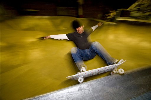 In this photo provided by tcolla, Andy Kessler skateboards in Greenpoint Brooklyn's Autumn Bowl on May 22, 2007, in New York. Kessler, a trailblazer during New York City's nascent 1970s skateboarding scene and a designer of skate parks who was admired by boarders on both coasts, died Monday Aug. 10, 2009 at the age of 48. Kessler died after suffering a heart attack following an allergic reaction to a wasp sting, a close friend and fellow skateboarder said Thursday. (AP Photo/tcolla) |