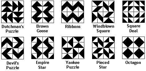 Here are some additional examples, following the above definition, of more traditional quilt blocks, with their traditional names: